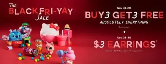 Shop in store and get everything for buy 3, get 3 free & get $3 earrings.